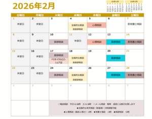 お知らせINFORMATION2026.01.13【相談案内】2月の日程2026年2月相談日程2月の予定を更新しました。来所や専門相談の調整にご活用ください。ご利用お待ちしております。PREVALLNEXT